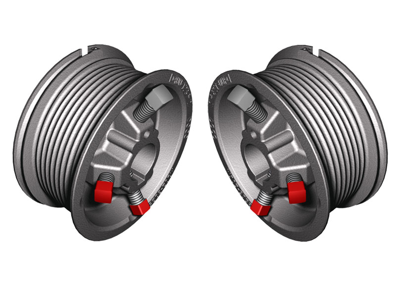 Is used for a standard lift. Supplied with 2 set screws for fixation on shaft. One cable set screw for cable fixation. For more information ask for a costumer drawing. Minimum walloffset =67 mm. Max torque bolts 20Nm. Material: Aluminium Max. door height: 3803 mm at 0.5 safety windings: 3297 mm at 2.0 safety windings Max. door weight: 340 kg Max. cable diameter: 4mm. Shaft diameter: 1 inch (25.4mm). Marking: Red = Left, Black = Right.