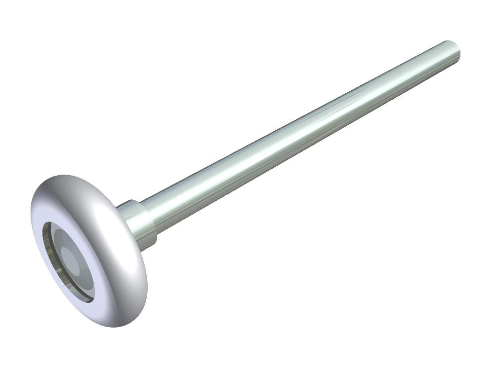 Ролер с бяла гума. Диаметър на ролката: 46мм. Доставя се с ос с дължина 193мм, подходящ за врати, по-широки от 5000мм, с двойни панти.