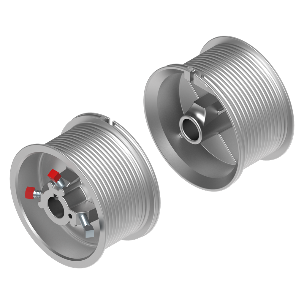 Индустриален барабан за кабели, приложим с нормални и LS системи до 5500 мм отвор за дневна светлина и 1¼" вал. 1¼" вал. С 0,5 предпазни намотки