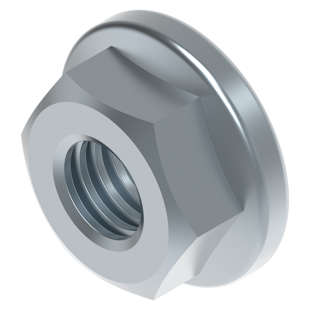 Гайка M6 със сариран фланец. Болтът не пада по време на монтажа. Предварителен монтаж на гайката с хамерболт