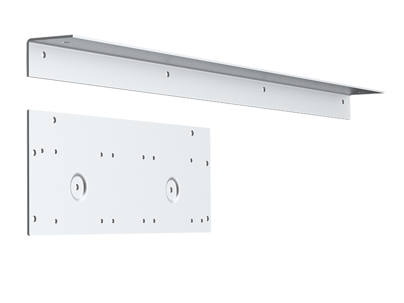 Комплект за сглобяване, състоящ се от стоманена ламарина и профил, който улеснява монтирането на дограма 875072 на входната врата.